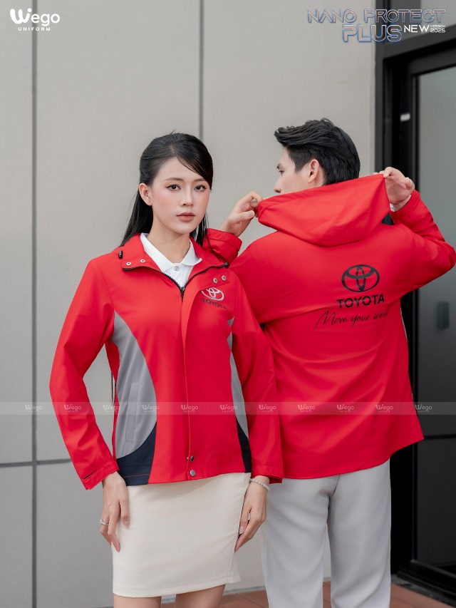 Đồng phục áo gió Nano Protect Plus màu đỏ tươi phối ghi và đen 02