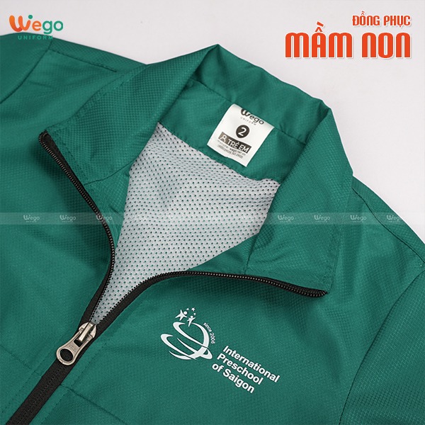 I. Thông tin chi tiết áo khoác gió đồng phục mầm non màu cổ vịt