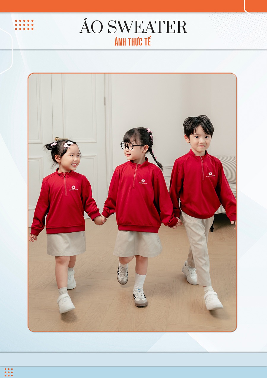 I. Thông tin chi tiết áo sweater đồng phục mầm non màu đỏ đô