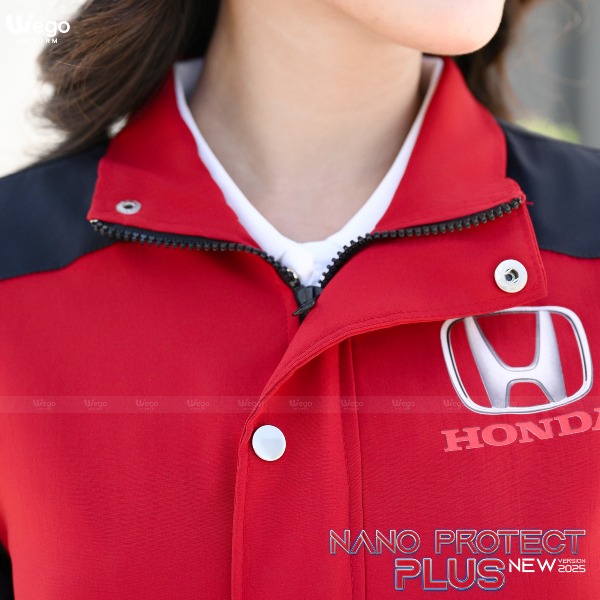 Review Đồng phục áo gió Nano Protect Plus màu đen phối đỏ đô 02
