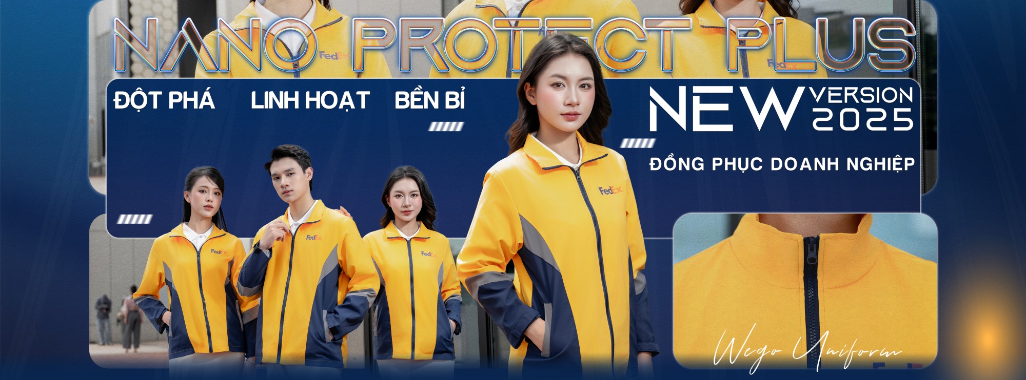 Đồng phục áo gió Nano Protect Plus màu vàng bò phối xanh đen và ghi 02 là một trong những thiết kế đồng phục ấn tượng thuộc BST áo khoác gió Nano Protect Plus 2025 của Wego Uniform. Sở hữu chất vải cao cấp NanoTex, kết hợp phong cách thiết kế hiện đại, thời trang, chuyên nghiệp, mẫu áo đang được đông đảo doanh nghiệp yêu thích và lựa chọn nhằm xây dựng và truyền thông hình ảnh thương hiệu.