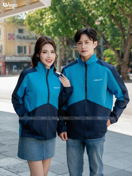 Đồng phục áo gió màu xanh đen và xanh tân đảo