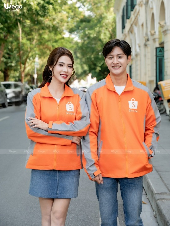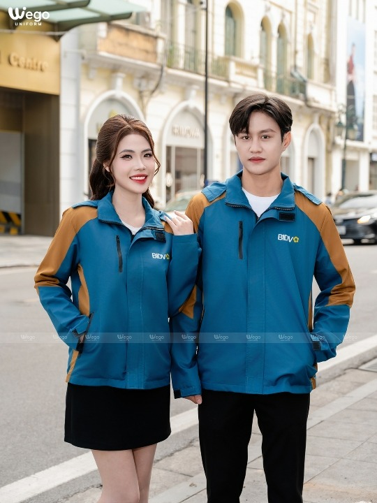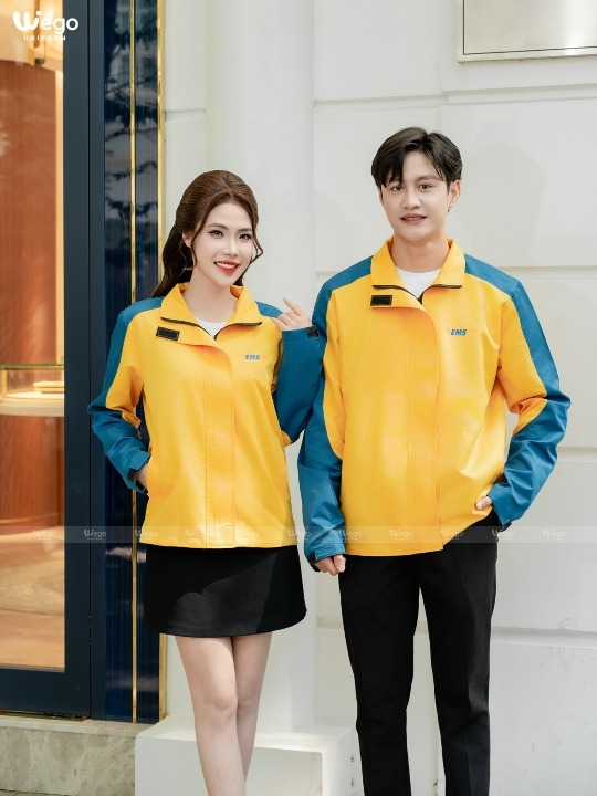 Đồng phục áo gió màu xanh cổ vịt và vàng bò