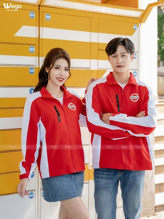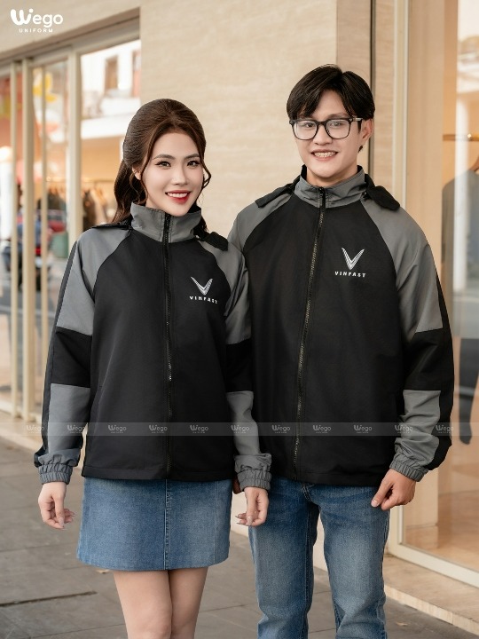 Đồng phục áo gió màu xanh đen và đỏ đô